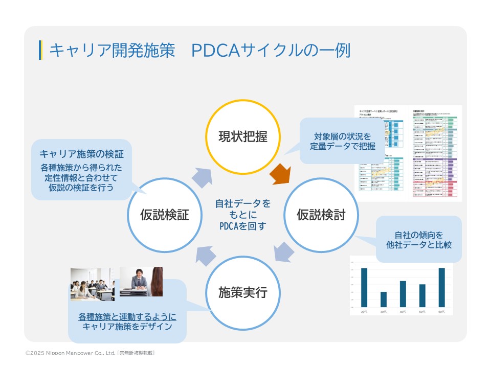 経営者への施策提案や、管理職の協力を得る際に、データがあることで説得力や納得感が高まります。キャリア施策は人事部門だけでは完結できず、各現場の上司の協力が不可欠です。